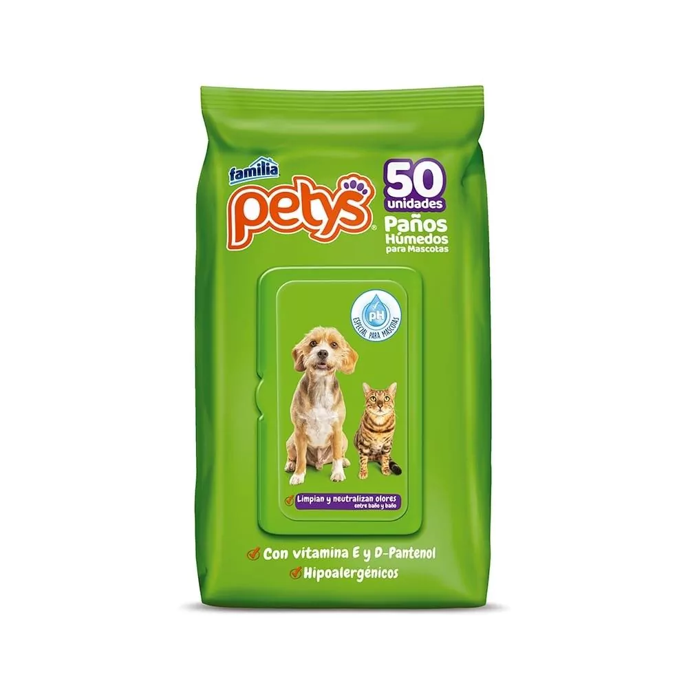 Pañitos húmedos para mascotas *50 Unidades, son toallitas húmedas elaboradas para el aseo corporal de tu peludo entre baño y baño.